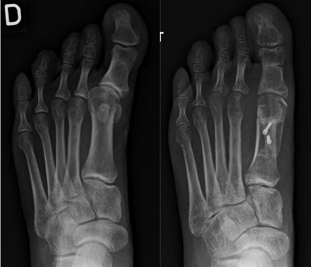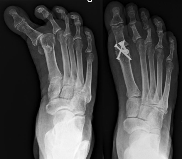Au stade initial de la déformation, l’articulation peut être remise en position axée par une simple pression des doigts, par vous même ou par le chirurgien tout en maintenant sa mobilité. Avec le temps, l’articulation s’enraidie par une rétraction capsulaire interne et apparaît progressivement une déformation en griffe de ce gros orteil.