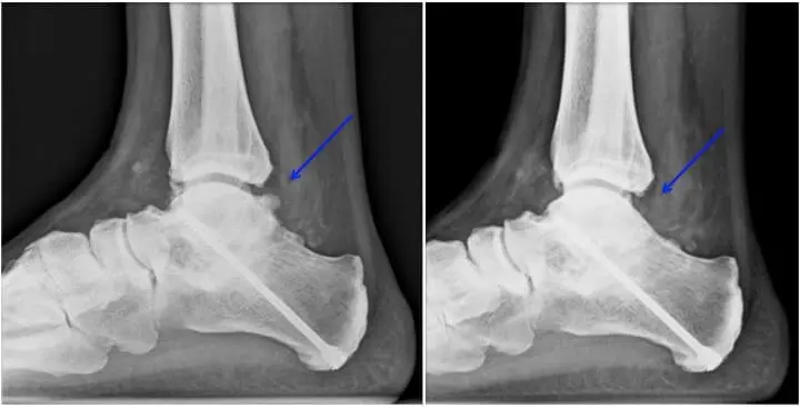Afin d’éviter un hématome, qui se développe souvent après l’opération, et risque de causer les mêmes symptômes, il est fortement recommandé de mobiliser rapidement la cheville dans les amplitudes maximales, et cela immédiatement dès le réveil. De plus, l’appui sera immédiat, sauf s’il s’agit d’une lésion cartilagineuse (6 semaines avec des béquilles).