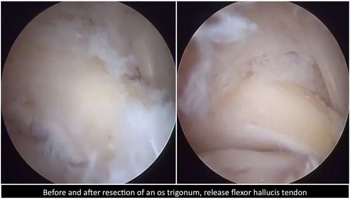 Les patients restants douloureux, en dépit de l’injection, avec des plaintes récidivantes, peuvent bénéficier d’une arthroscopie. Le nettoyage de la partie postérieure s’effectuera par deux petites incisions, qui permettront d’introduire des instruments comme la caméra et les pinces qui permettent d’enlever les tissus malades, le tout en hôpital de jour.